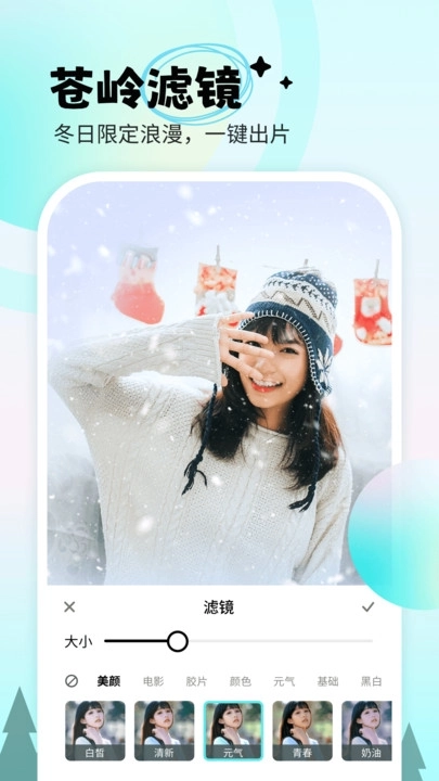 1、苍岭滤镜,冬日限定浪漫,一键出片;