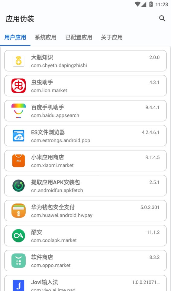 2、将应用内的部分显著特征与标志(如图标、颜色、文本、启动画面等)替换为与被伪装应用对应的内容,还可给应用里的按钮和活动增设不同的功能与设置,使该应用在外观上更接近被伪装的应用。