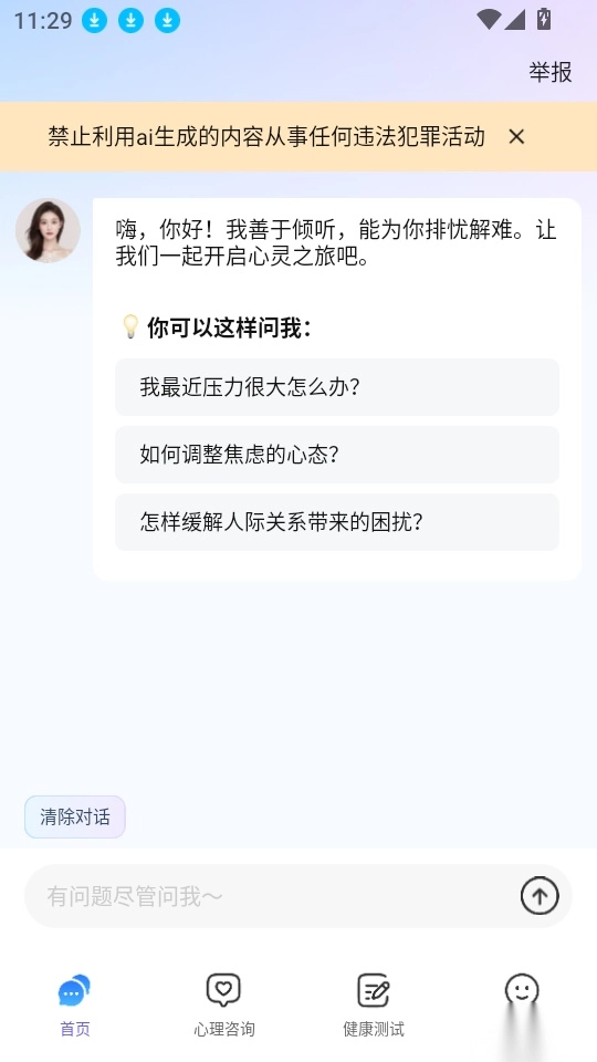 这款软件支持线上心理咨询服务,用户能够就心理问题向专业人士咨询,从而更有效地缓解内心压力。