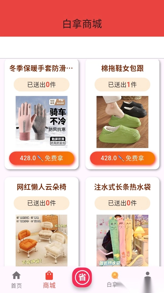 之后就能够在“白拿商城”的界面里点击“免费拿”的商品,进而开展下一步操作。