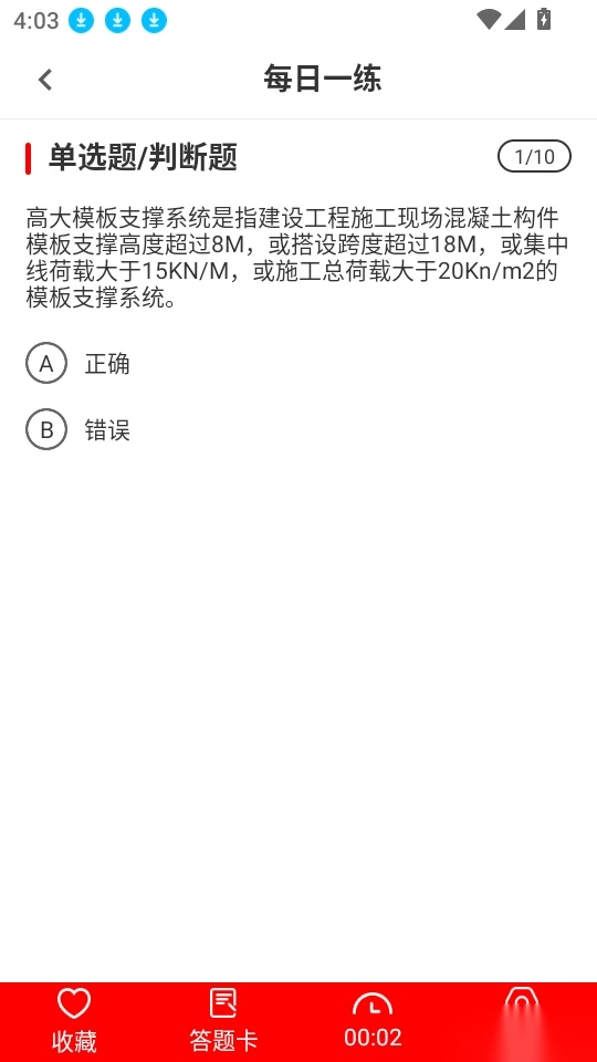 在软件首页的功能模块里,点击“每日一练”按钮,即可进入下一步操作。