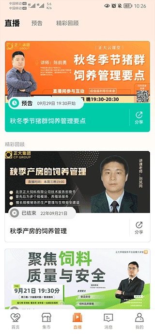 3、在直播界面,用户也可以通过观看饲养管理要点、饲料质量与安全等相关直播内容,进一步丰富自身的养殖知识储备。