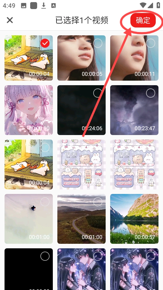 4、任意选择一个视频内容,点击右上角的“确定”。