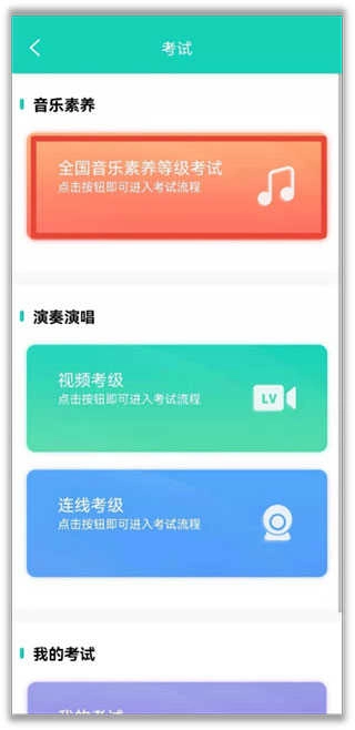 1、打开央音考级应用后,挑选你计划参与的等级考试,接着点击对应按钮就能开启考试流程。