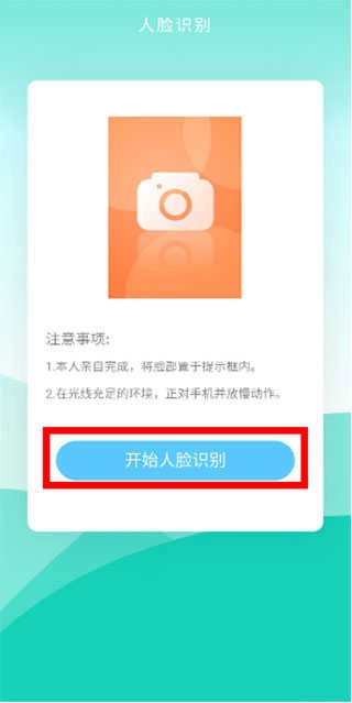 6、身份认证环节需本人亲自操作,将面部对准提示框区域,在光线明亮的环境中,正对手机并放缓动作完成验证。
