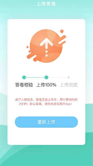 11、完成答题后,答卷会自动上传到服务器,这个过程中请不要退出或关闭系统。