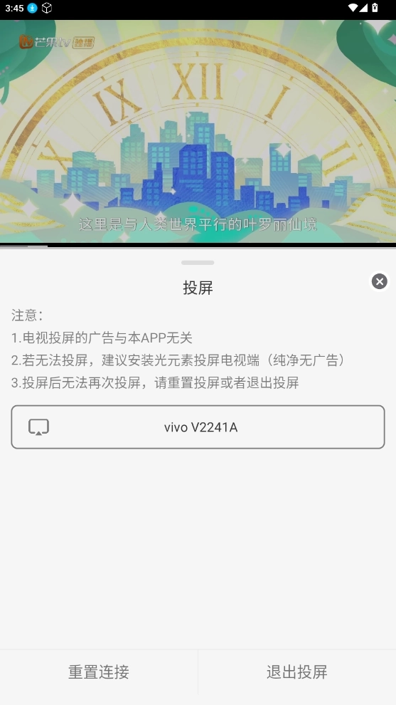 2、在播放页面的右上角找到电视形状的图标,点击该图标即可进入投屏模式。