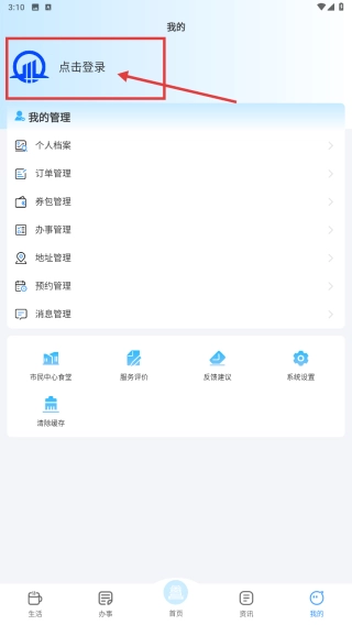 打开政务服务类应用,点击底部的“我的”选项,即可进入个人中心页面。