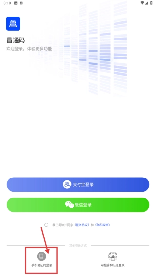 选择手机号验证码登录选项,进入手机号登录页面。