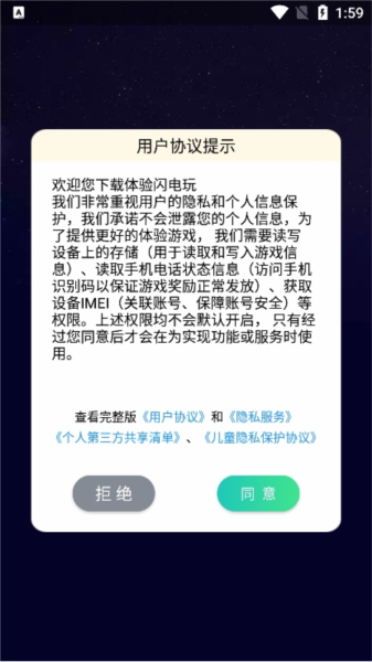 2、进入并同意闪电玩的使用权限