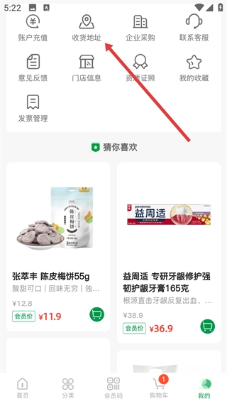 2. 进入个人中心后,找到【收货地址】这一选项并点击,随即就可进入地址管理界面啦。
