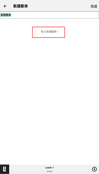2. 在新建歌单的页面上,点击导入外部歌单。