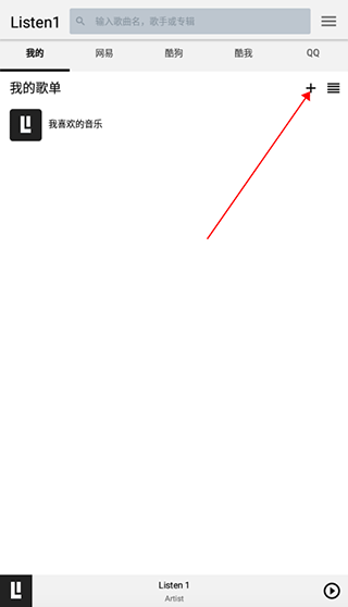 1. 在“我的”页面里,点击歌单旁的小加号。