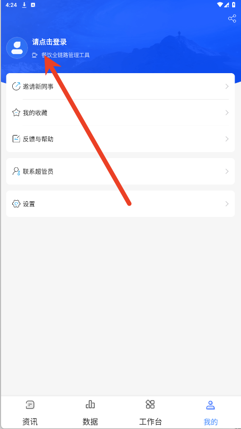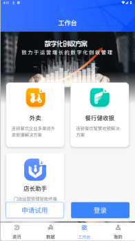 2. 该软件设有资讯、数据、工作台以及“我的”界面。