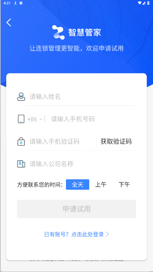 4、点击“申请试用”选项,填入相关信息,并选择方便联系的时间段,最后再次点击“申请试用”完成操作。