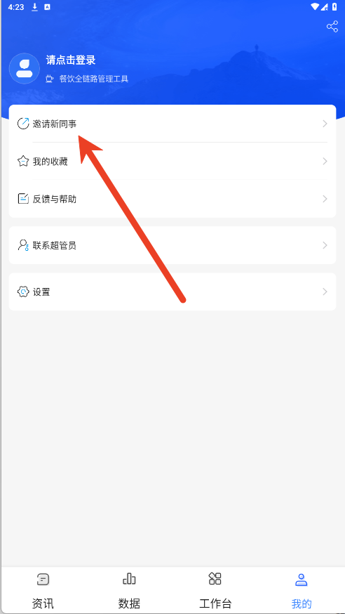 3、进入个人主页后,点击【邀请新同事】按钮。