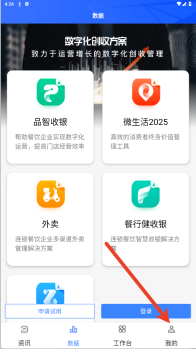 1. 进入餐行健智慧管家的主页,然后点击右下角的【我的】。