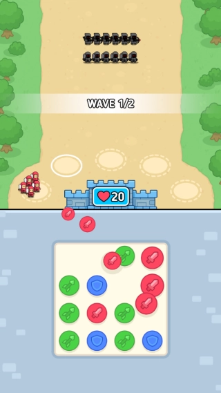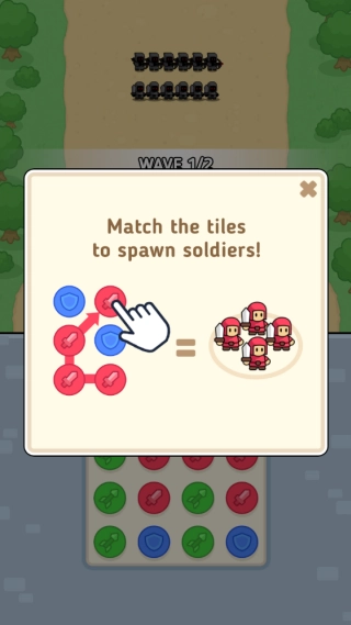 2. 相连的同类元素数量越多,所召唤出的士兵数量便越多,战斗力也会越强。所以,怎样进行连线,这对玩家而言也是一种考验。
