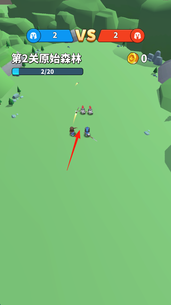 3、在战斗过程中(红箭头指示处),士兵会自动进行合并升级(以2VS2的形式),以此强化自身战力,进而清理敌方部队,成功通关第2关后,即可获取奖励。