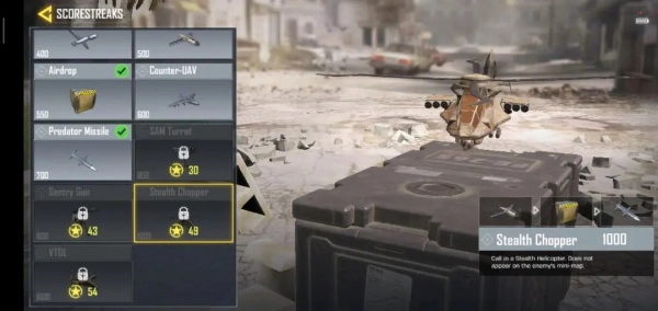 隐身直升机在释放后,会悬停于标记点的空中,对路过的敌人展开压制。它不会在敌人的单兵雷达上留下标记,这种用法与哨戒机枪相近。