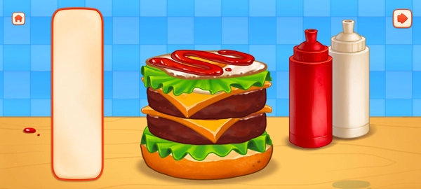 4、游戏玩法简便,极易上手,玩家仅需点击与滑动屏幕,就能体验到完整的汉堡制作流程。