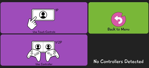 2、左侧紫色区域的选择按钮有两种控制方式,分别为触屏操作与游戏手柄操作。若选择游戏手柄操作,需与好友组队联机方可体验。