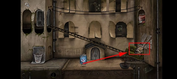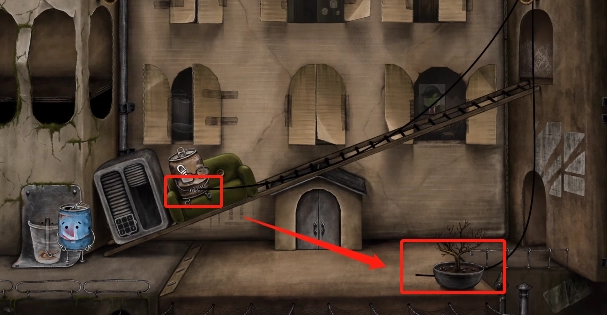 5、接下来向左进入下一场景,将水管接好,并拾取掉落的盆栽