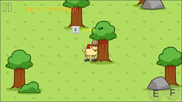 第一个水果朋友在这个石头这,我们需要找到蜂窝来让他出来。