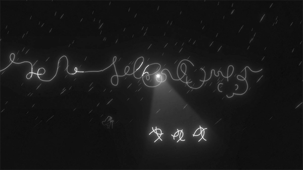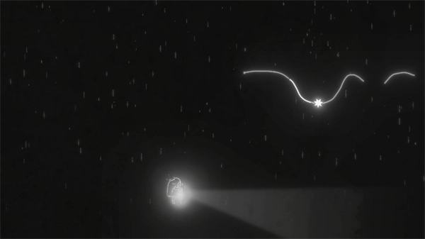 2、以交互式简绘形式呈现的短片,搭配轻松的背景音乐,黑白色调的游戏世界营造出如梦似幻之感。