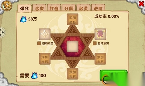 进入到炼丹炉的强化栏目,将要强化的装备放上去,再添加强化宝石,消耗一定的灵魂,即可进行装备强化。但是装备强化并不是100%成功的,失败的话,装备会降级。玩家在强化时尽可能使用高等级的强化石,除此之外,可以通过添加幸运符来增加装备强化成功的几率,还有添加神恩符来防止高级装备强化失败降级。