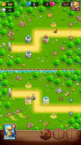 1、动态塔防布局:在随机生成的敌人路径上部署箭塔、魔法塔、炮塔等,结合地形(如狭窄通道、高地)优化防御效率。