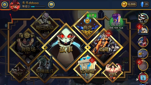 1、打开Skullgirls手游,进入游戏后,点击左上角设置按钮;