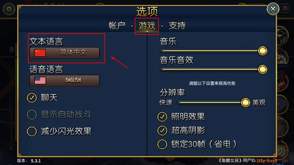 2、然后点击游戏,找到语言;