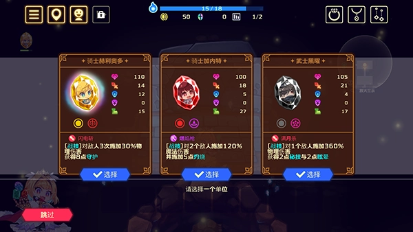 5、在行动途中,还会遭遇佣兵,此时我们要挑选一个恰当的英雄单位。