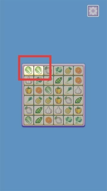 1、打开游戏,首先映入眼帘的是由各类蔬菜水果方块构成的消除棋盘。在这个阶段,玩家只需直接点击两个相连且相同的图案,即可实现消除。此外,玩家还能够通过上下左右滑动其他图案来达成移动消除的操作。