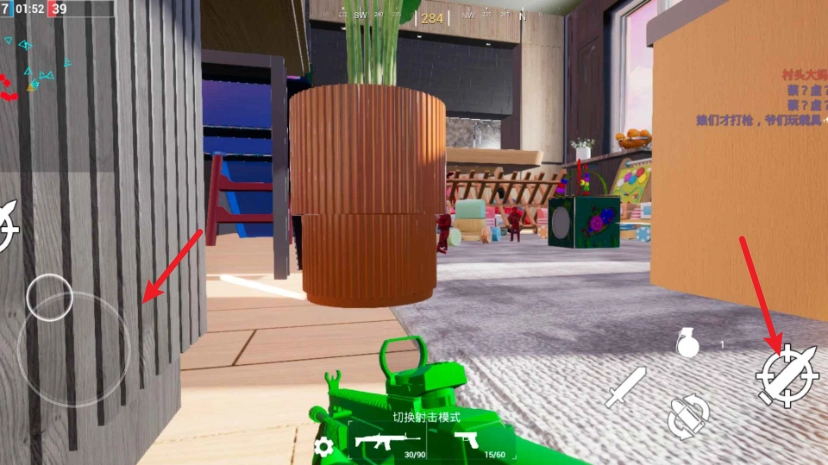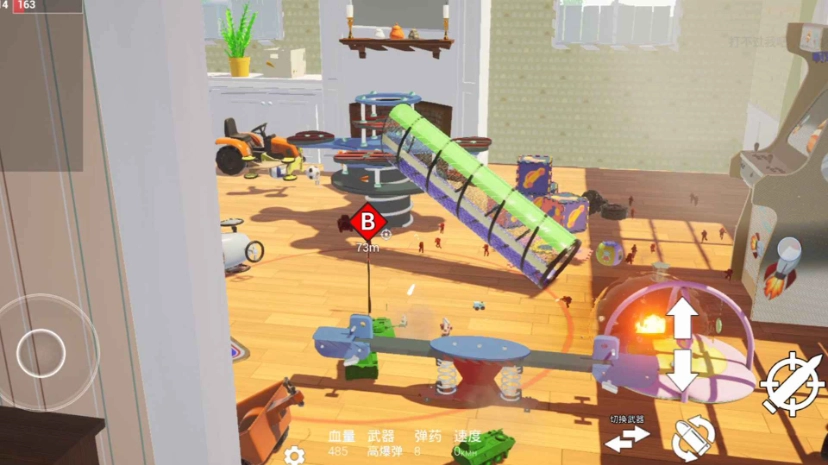 2、选好模式后即可进入游戏。进入游戏后,通过左侧摇杆来控制移动,右侧按钮则用于进行射击操作。