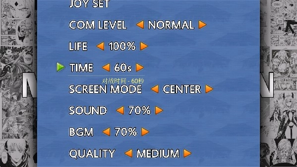 2、在此,我们能够对游戏内的对战时间、血量、操作方式等各项内容开展自定义设置。