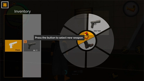 2、左边代表方向,右边有诸多操作键,包括攻击、射击以及跳跃。点击左上角可实现武器的更换。