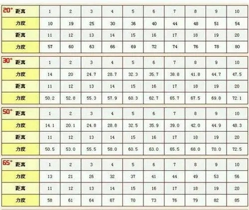 以下为刻度蓄力玩法的基本角度、力度、风力对照表,以及高抛玩法的计算公式,大家可在实际操作中参考。