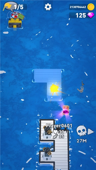 《疯狂的海战》中文版是一款超有趣的对战游戏,以卡通画风搭配逼真的3D建模,玩法简单,能为玩家带来轻松的对战体验。在游戏里,玩家置身于一片海域,拥有一座小小的防御塔。你得在海中收集各类物资,像防御塔、炮台、泳圈等,这些物资会融入你的木筏,增强领地的防御与攻击能力,提高你在海战中的生存几率。