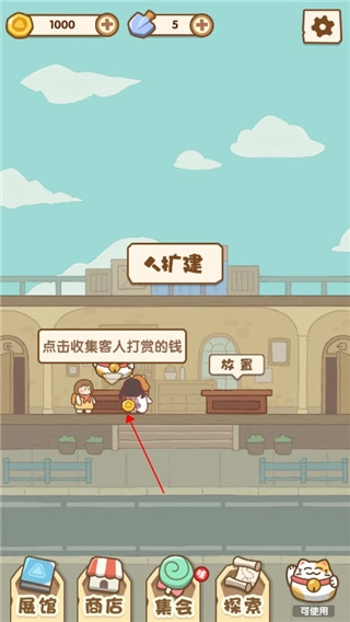 2、将开出的招财猫放置好就可以吸引到客人了,不过光有这个是不够的,后续还是要放其他宝物。