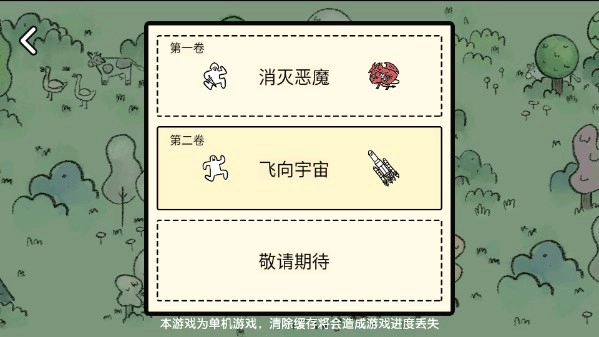 2、进入游戏后,你能够在“消灭恶魔”与“飞向宇宙”这两个章节中挑选一个开始体验。这两个章节难度一致,不过剧情目标存在差异。