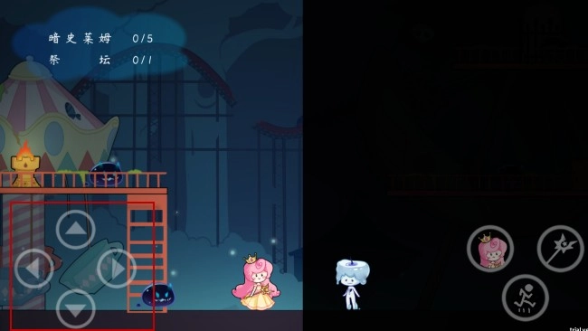 4、轻点角色按键,便能实现角色切换,操控角色拿起已被点亮的史莱姆。