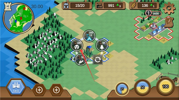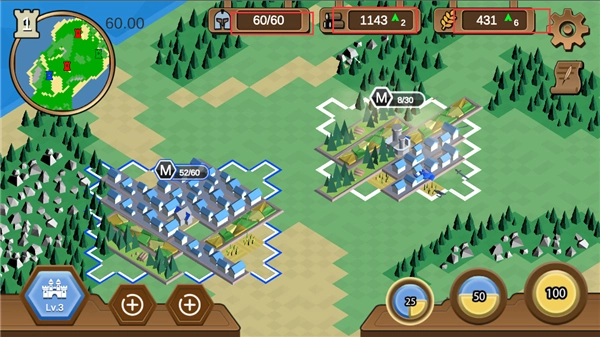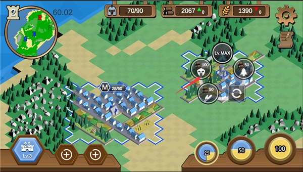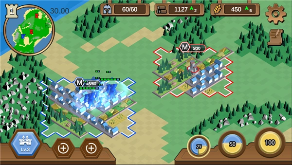 木材可用于建筑的建造与升级,粮食则是产出士兵的必备资源,而兵营承担着训练士兵的职责。玩家需巧妙权衡这三种建筑与现有资源,以此制定发展规划,最终达成最优策略。除了自身发展,通过军事战略实现版图扩张,也是玩家发展的关键路径。基于沙盒理念构建的超大型地图,极大地方便了军事部署。玩家可在这片地图上争夺中立资源,逐步壮大自身,最终成为这片大陆上最为强大的势力。