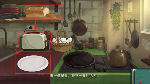 11、轻点早餐图标,享用餐点后,接着完成日常流程。