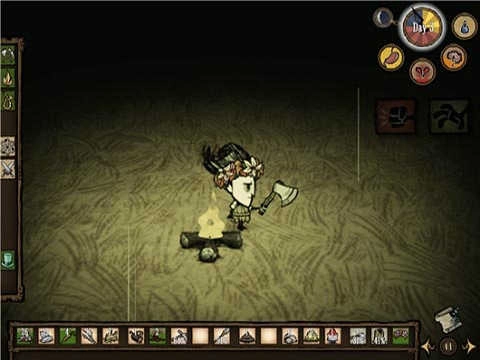 制作:过夜用光源,可选择以下两种方式。其一为火堆,所需材料为木头2个、草3个;其二为火炬,所需材料为草2个、树枝2个。