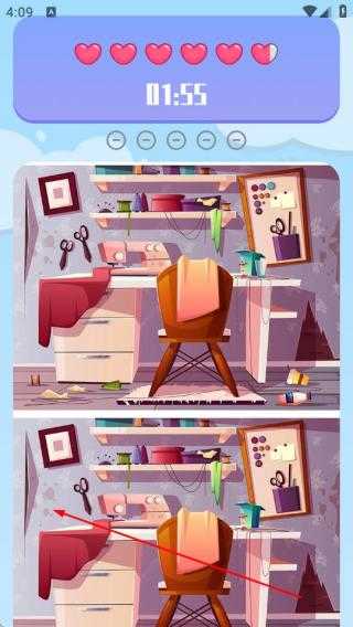 3、每当成功找出一处差异,就会点亮绿色对勾。在此过程中,要留意剩余爱心数量与剩余时间,顺利完成关卡即可推进游戏。