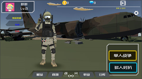1、首先,安装《战火1:前线争端》。安装完毕后,打开游戏主界面,选择右下方的单人战争或多人对抗模式开启游戏。