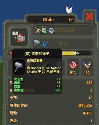 2、接着在岛屿上寻找一位属性较为不错的人(矮人村庄优先考虑,因为他们拥有较多的传奇装备),并给这个人添加小星星进行标注。(注意,此时除了自动生长树,其他功能都要关闭。)