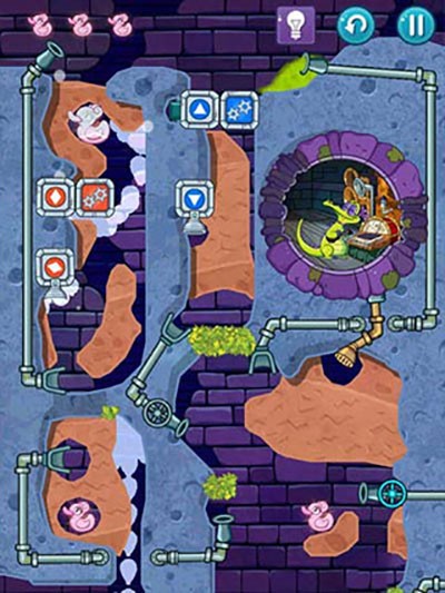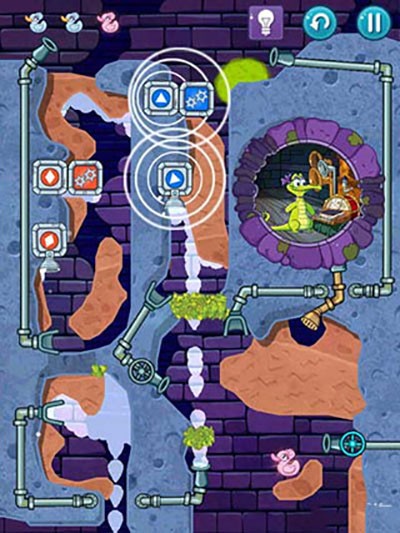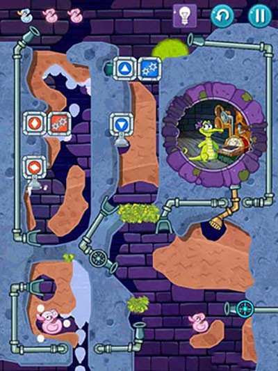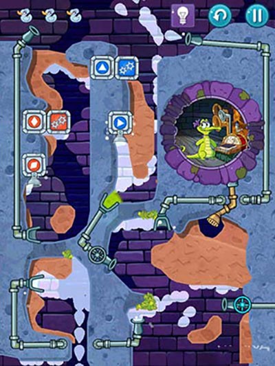 2. 进行管道连接操作,把各类不同的管道相互连接起来,以此助力小鳄鱼洗澡。